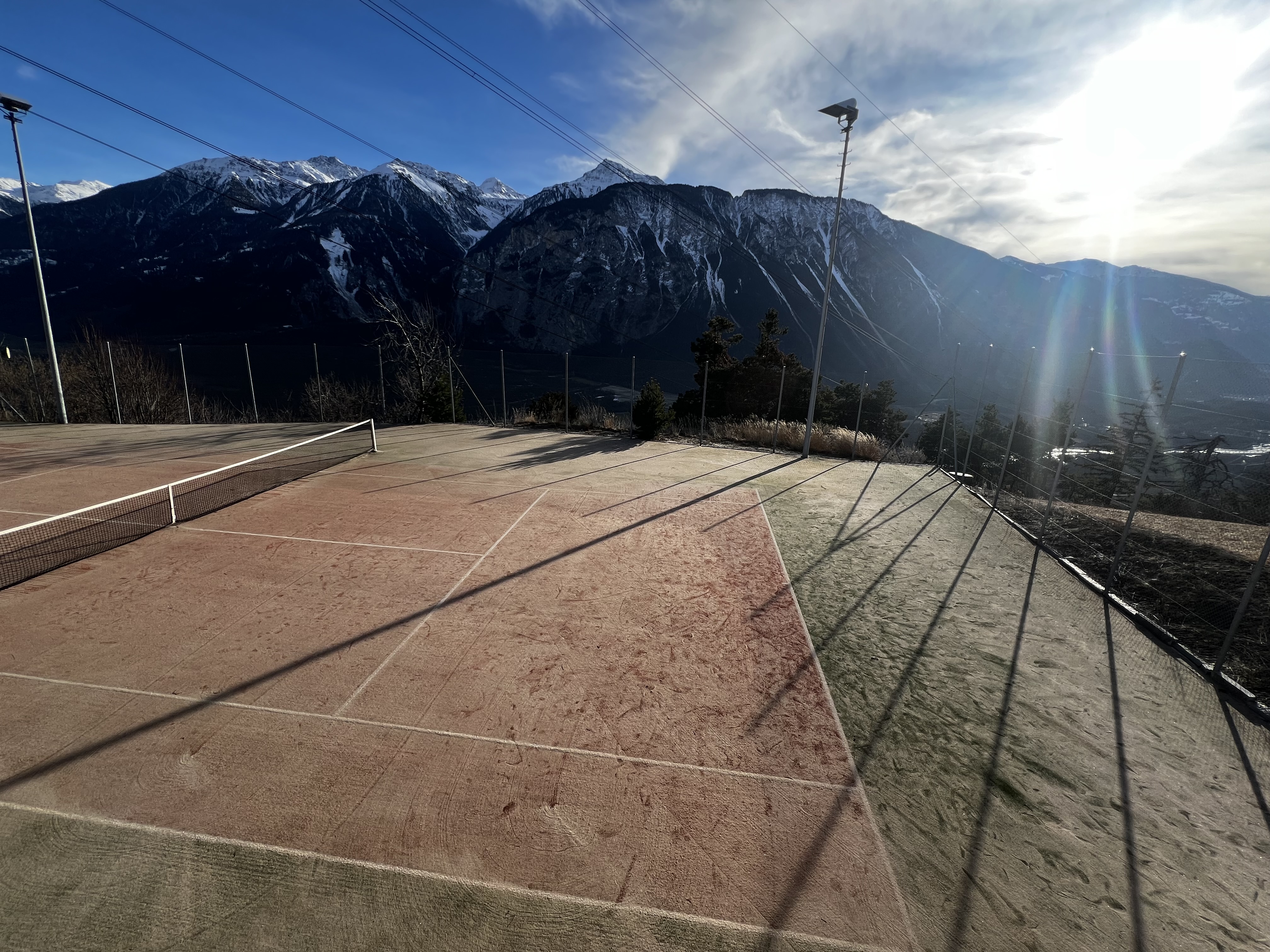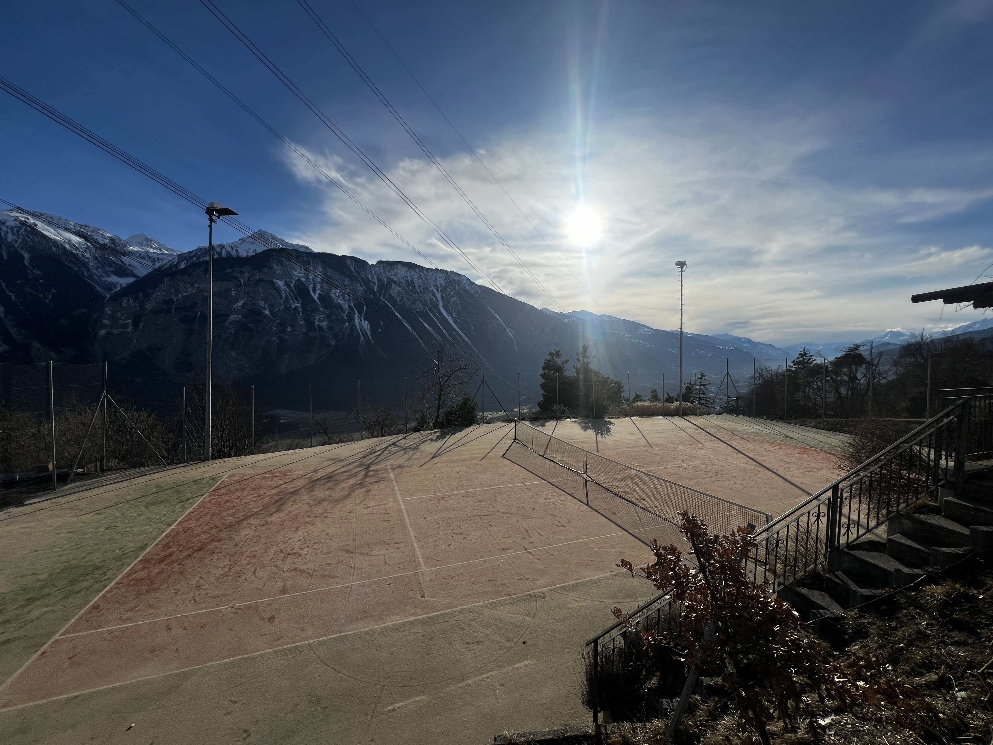 Der Tennisplatz von Varen liegt in "Taschonieren" im Wald oberhalb des Weindorfs Varen.
